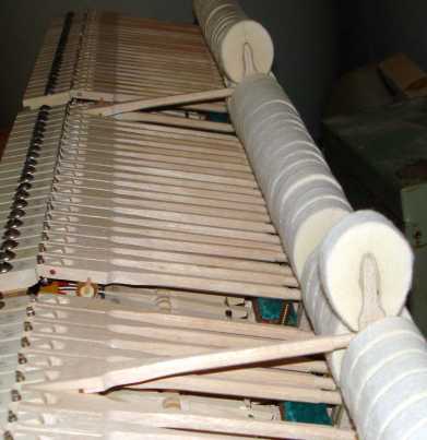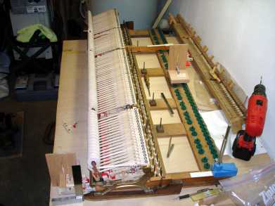 | Front view of complete rebuilt action evaluating touch weight, key weight, or down weight |